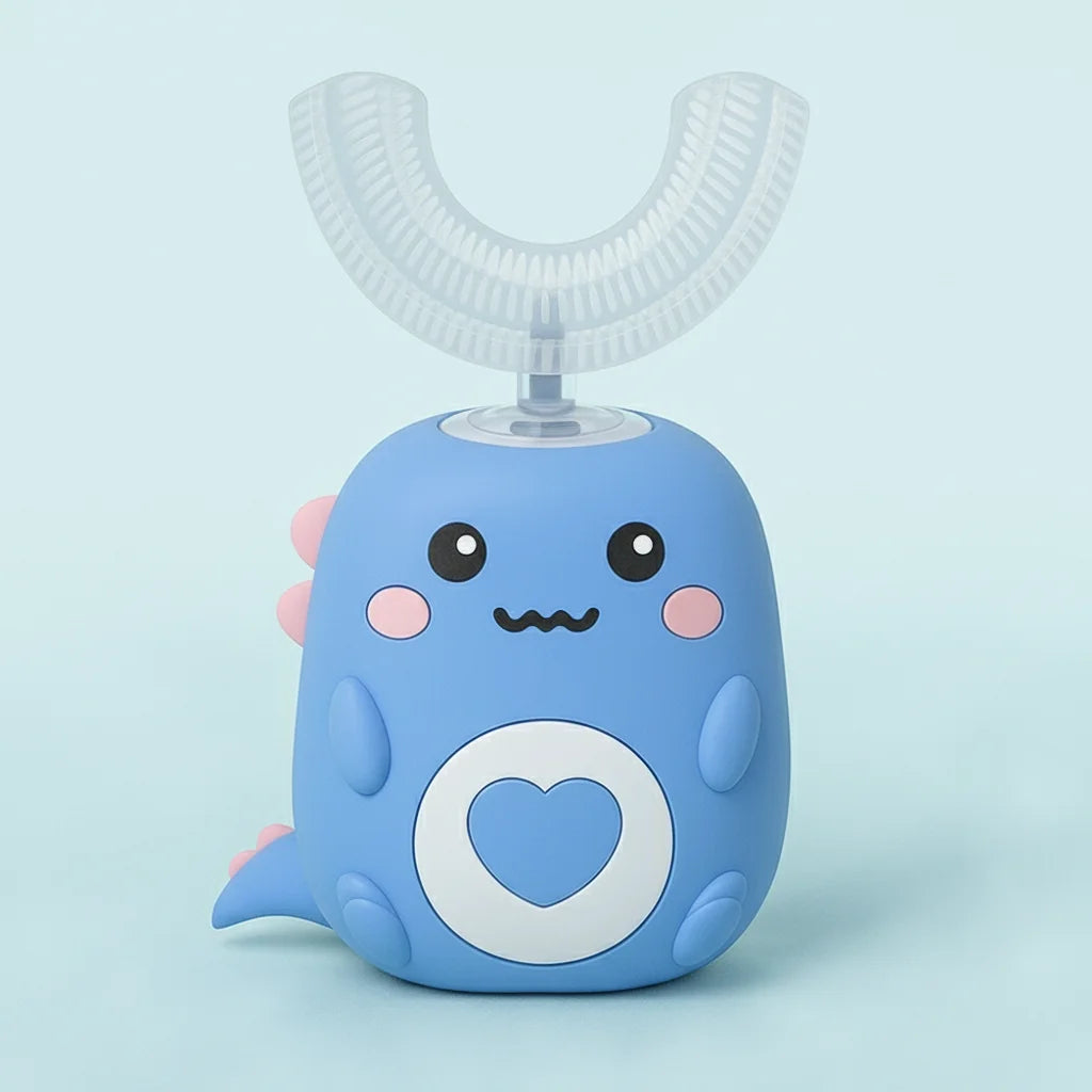 Toddla™ utiliza tecnologia ultrassônica 360º, limpando todos os dentes simultaneamente e removendo 82% mais placa do que uma escova manual. Seu design em U garante que cada superfície do dente seja alcançada, proporcionando uma limpeza completa e superior que as escovas tradicionais não conseguem igualar.